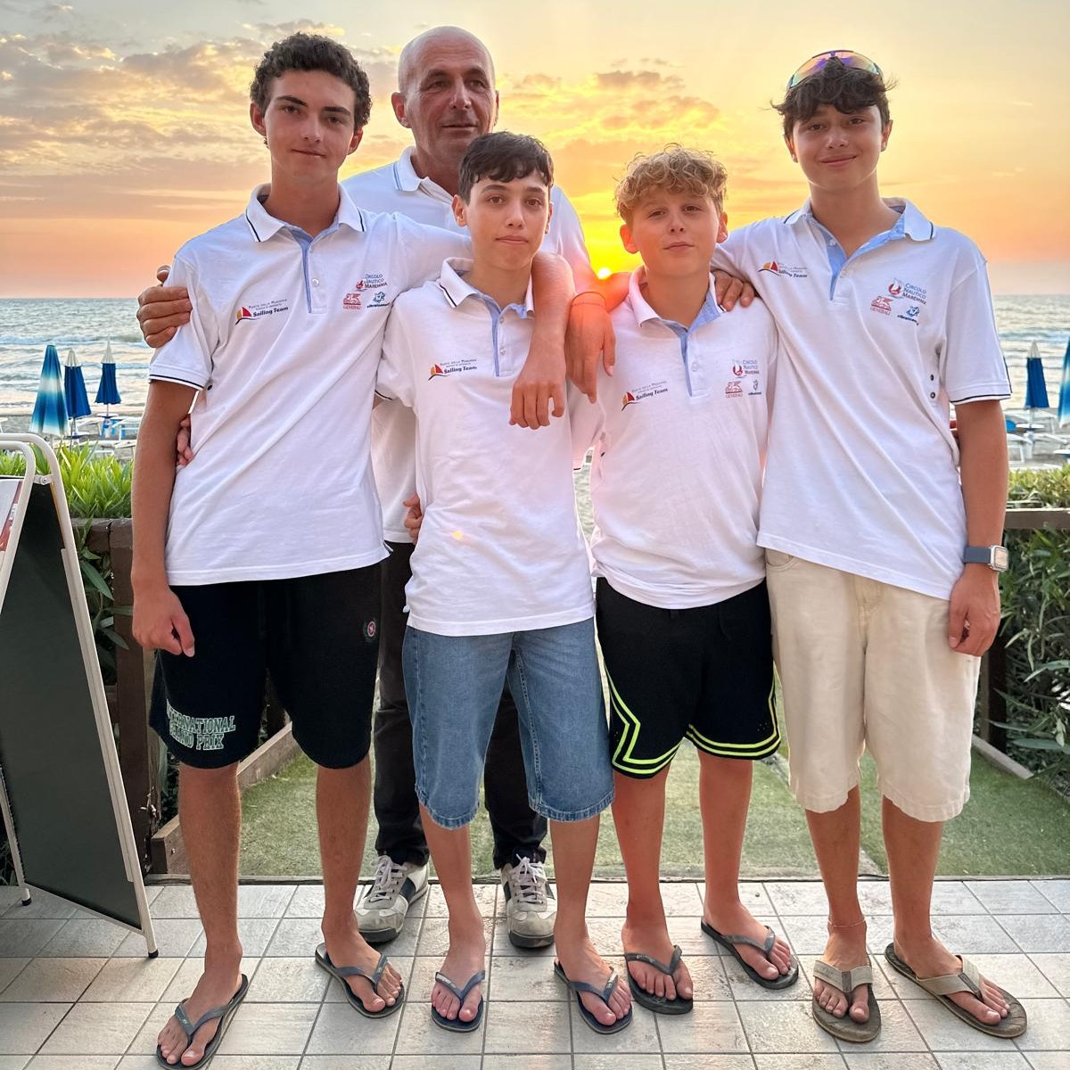 In foto: Leonardo Convertiti Mann, Boris Durkalets, Daniele Fonti, Alessandro Serra, i nostri straordinari giovani atleti che si sono allenati duramente a Marina di Grosseto sotto la guida esperta del team di istruttori del CNM, capitanati da Piero Romeo, con la collaborazione di Lucas Bovari del CNVA di Porto Ercole, che li seguirร in tutte le gare del Mondiale.